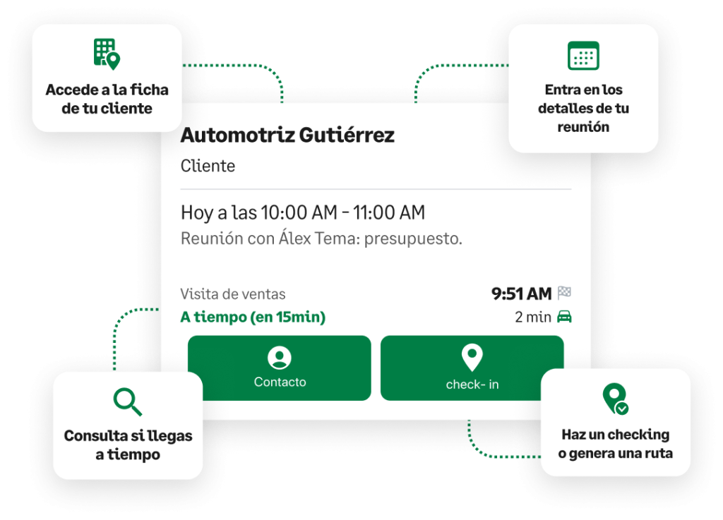 Además, el vendedor podrá reportar sus visitas comerciales sobre la marcha, sin necesidad de usar libreta o esperar al final de la semana para cargar todos los datos en un arcaico CRM o software de ventas, lo que repercutirá en un ahorro de tiempo que tendrá disponible para otras tareas, como la captación de nuevos clientes o el seguimiento de sus cuentas.